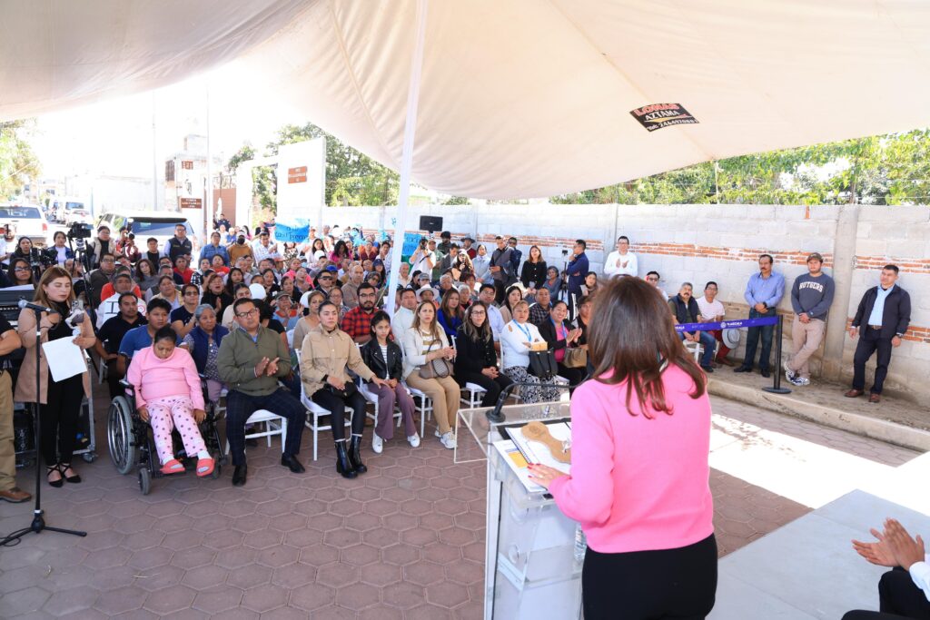 En gira de trabajo, la mandataria local también inauguró la construcción de guarniciones, banquetas y pavimento con adoquín en la calle Primero de Mayo de la comunidad de Atlamaxac, en Tepeyanco, en donde adelantó que se va a invertir en un Centro de Control y Comando (C2), para cuidar la seguridad de todos.