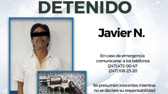Tras realizarles una inspección, encontraron a un masculino de nombre Javier N. se le localiza fajada a la altura del pantalón un arma de fuego tipo revolver. Al observar esto, los policías municipales le solicitaron al masculino la documentación que acredite su legal posesión, quien manifestó no contar con ello.