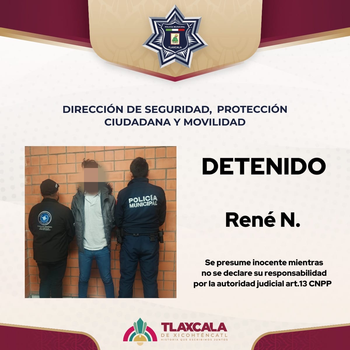 Tras la actuación policial, la persona fue identificada como Arturo “N”, de 27 años de edad, quien fue trasladado y puesto a disposición del Juzgado Municipal de Tlaxcala, donde se inició el procedimiento correspondiente para definir su situación legal.