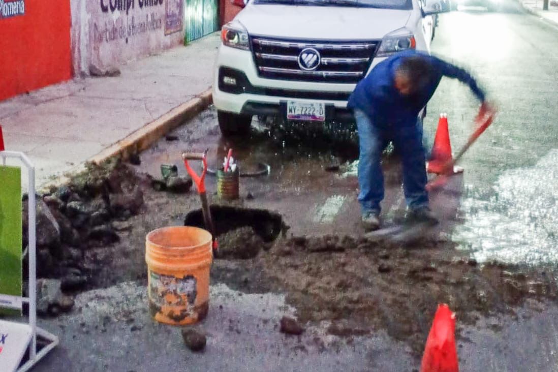 La Comisión de Agua Potable y Alcantarillado del Municipio de Huamantla (Capamh) realizó de manera inmediata reparaciones de fuga en la calle Zaragoza Poniente, entre Roberto Covarrubias y 20 de Noviembre.