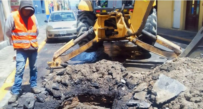 La Comisión de Agua Potable y Alcantarillado del Municipio de Huamantla (Capamh), en conjunto con la Dirección de Obras Públicas, atendieron una importante fuga de agua en la línea de conducción ubicada en la esquina de la calle Allende y Galeana.