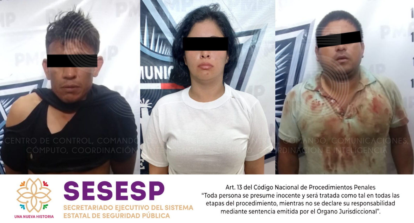 Se trata de Enrique N., de 37 años; Carlos N., de 32 años, y Pamela N., de 26 años, quienes fueron asegurados y remitidos al Ministerio Público por elementos de la Dirección de Seguridad Pública Municipal de Tepeyanco.