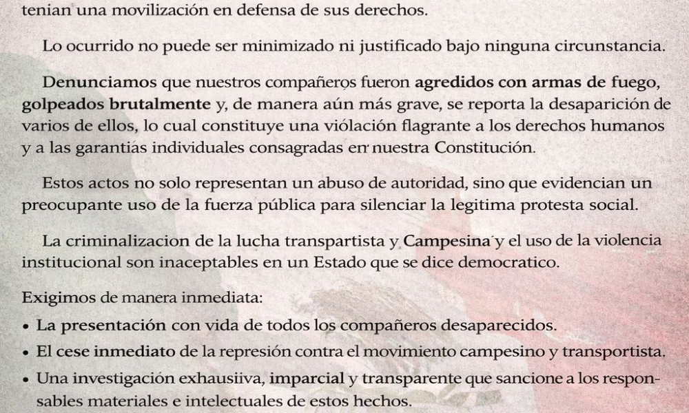 LUIS ROMERO En el contexto del #ParoNacional2026, el Frente Nacional para el Rescate del Campo Mexicano (FNRCM) emitió un posicionamiento urgente en el que denuncia un...