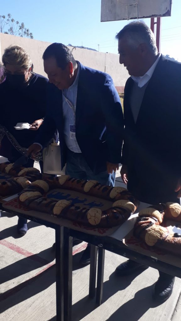 Como parte de las actividades que viene realizando el sistema educativo estatal, los maestros del subsistema de telesecundarias de la Zona Escolar 02, durante el receso de sus talleres de formación continua, llevaron a cabo el tradicional corte de rosca del Día de Reyes.