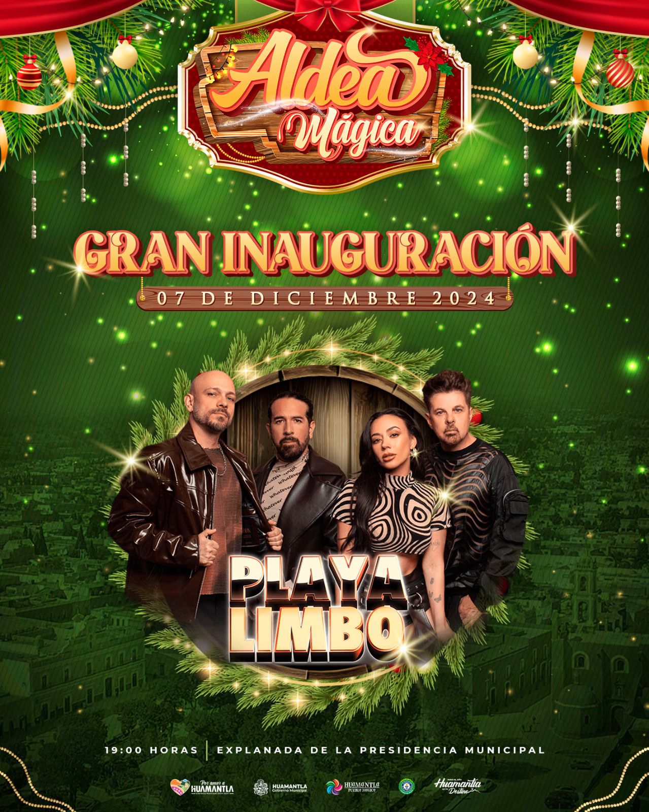 Con un gran concierto gratuito de la agrupación “Playa Limbo” iniciará la Aldea Mágica 2024 el próximo 7 de diciembre en Huamantla, a las 19:00 horas, evento que dará realce a esta edición del festival navideño organizado por el Gobierno Municipal que encabeza Salvador Santos Cedillo, el cual contempla eventos de gran calidad diseñados para todos los gustos y sectores a lo largo de este mes.