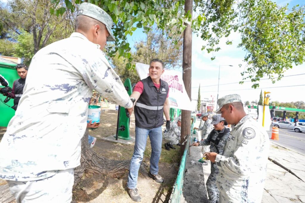 Durante la jornada, el alcalde lideró las brigadas del Ayuntamiento, que también contaron con la participación de elementos de la Guardia Nacional y de la Secretaría de la Defensa Nacional. Juntos emprendieron acciones encaminadas a recuperar un parque que durante años permaneció en el abandono y que hoy vuelve a ser funcional para el sano esparcimiento de las familias.