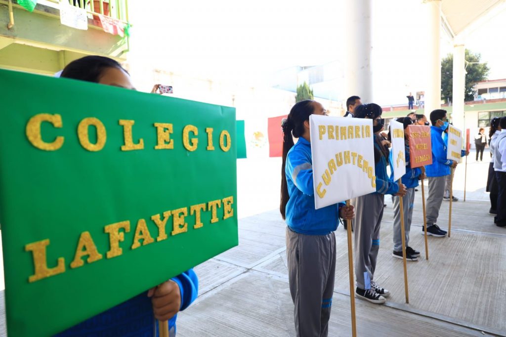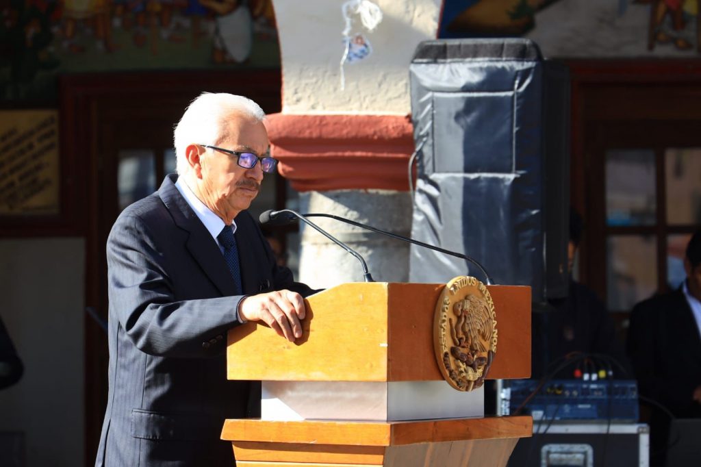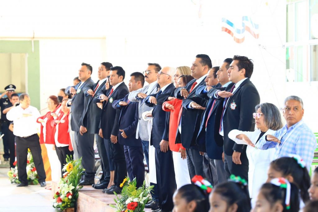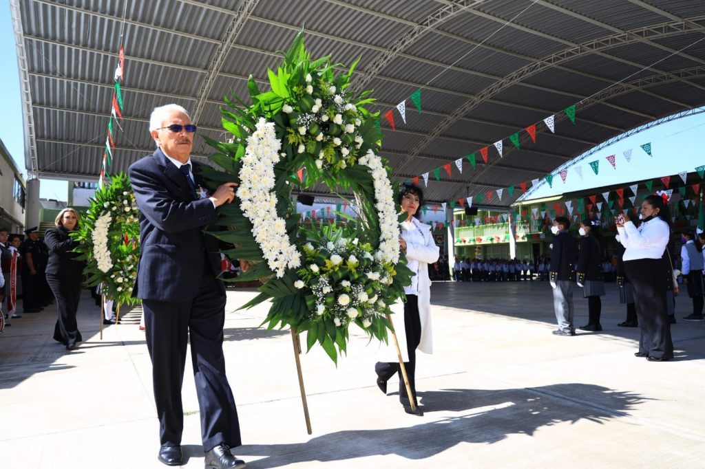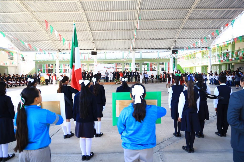 Más tarde, en la escuela primaria Niños Héroes de Chapultepec, ante autoridades educativas, del gobierno del estado y miembros del Ayuntamiento, Jiménez Romero expresó que estas fechas nos recuerdan que, solo trabajando en unidad, reconciliación y en armonía es como podemos alcanzar un México más justo para todos.