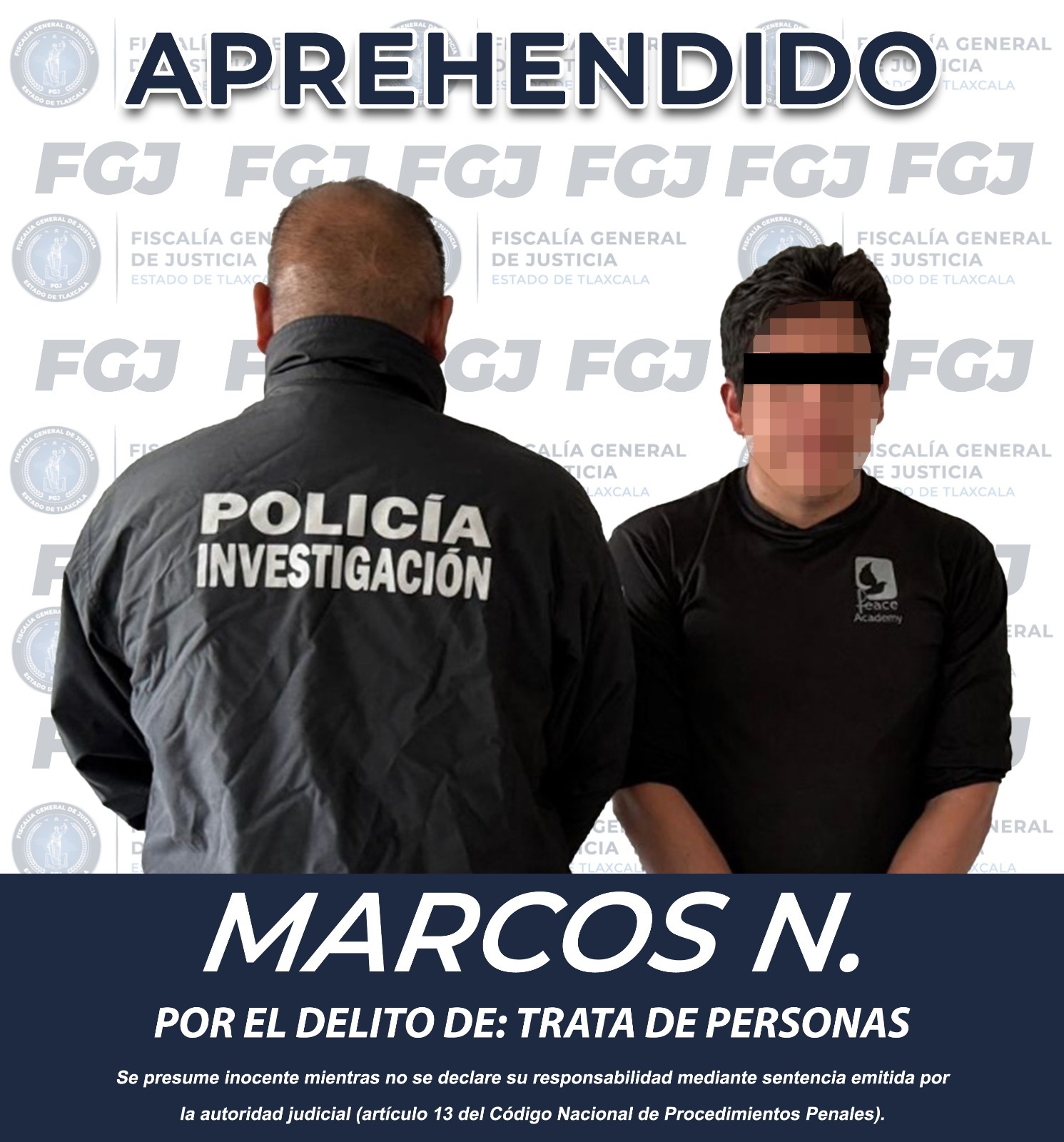 Resultado de los trabajos de investigación sobre la presunta explotación sexual contra una mujer, elementos de la Policía de Investigación de la Fiscalía General de Justicia del Estado (FGJE), cumplimentaron una orden de aprehensión en contra de Marcos N., por el delito de trata de personas.