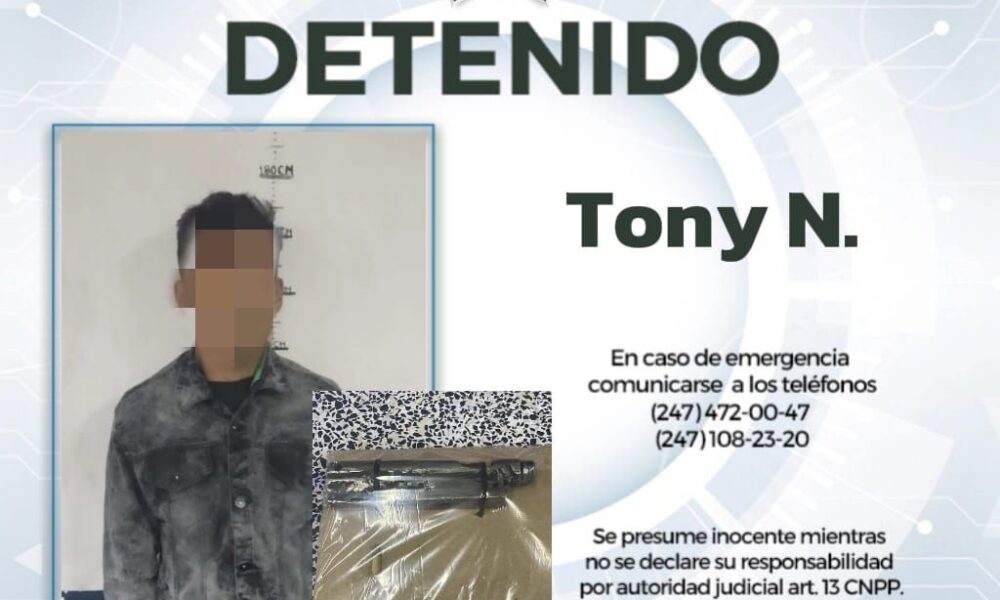 DETIENE POLICÍA DE HUAMANTLA A HOMBRE EN POSESIÓN DE UN ARTEFACTO CASERO CON CARACTERÍSTICAS DE ARMA DE FUEGO