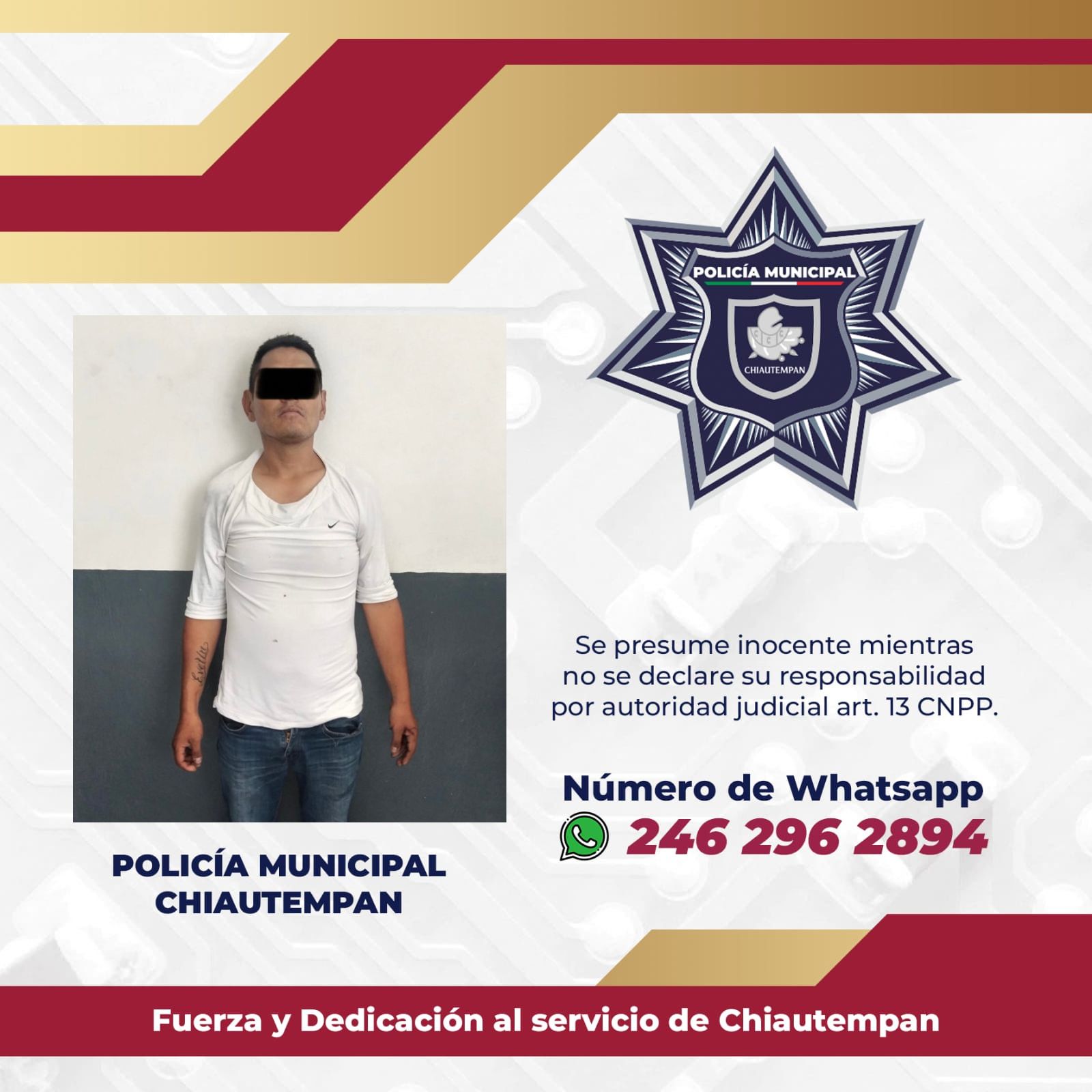 DETIENE POLICÍA MUNICIPAL DE CHIAUTEMPAN A SUJETO POR DAÑOS MATERIALES Y ROBO A TIENDA DEPARTAMENTAL