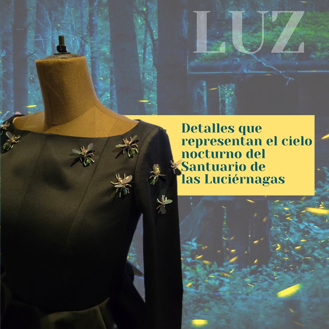 El vestido “Lucerna” —cuyo nombre evoca la luz— fue concebido como una pieza simbólica: representa la identidad de Tlaxcala, sus raíces y el papel de las mujeres en la transformación del país.
