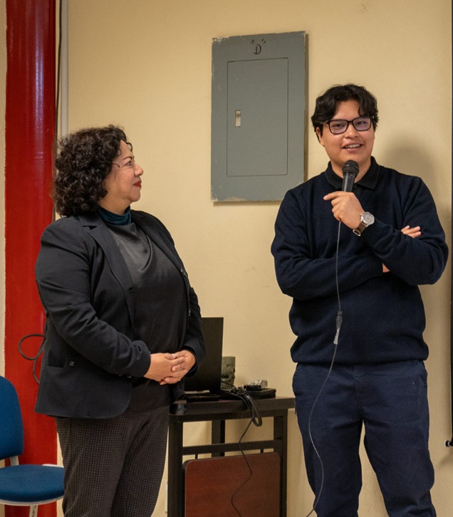 Durante su conferencia, el ingeniero compartió detalles de su trabajo doctoral, que se centra en el análisis de microfibras de origen textil mediante imágenes obtenidas con técnicas avanzadas de microscopía.