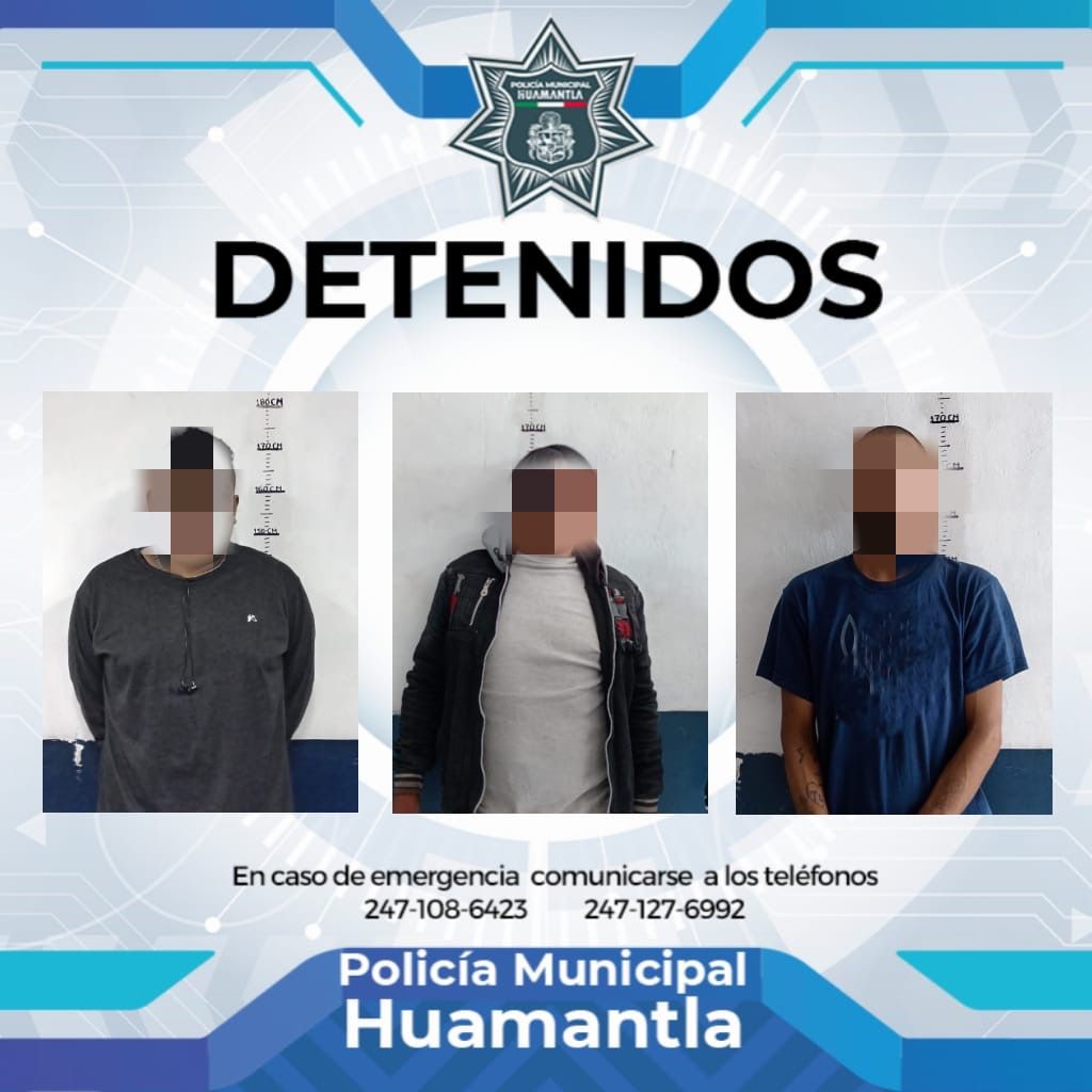 EN HUAMANTLA, DETIENEN A TRES HOMBRES POR ALTERAR EL ORDEN Y CONSUMIR SUSTANCIAS NOCIVAS