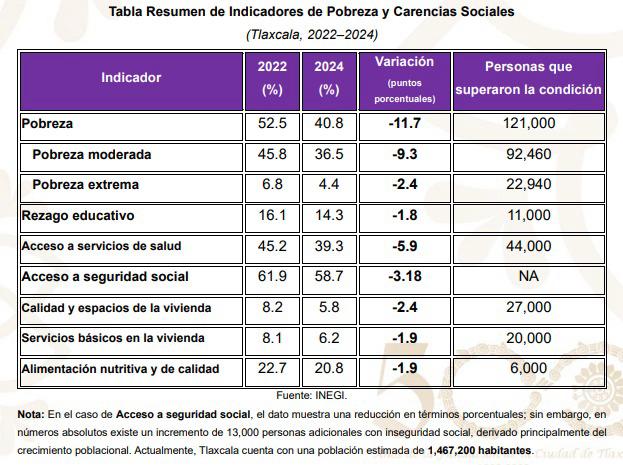 “Las cifras no son sólo números, son evidencia del impacto positivo que las políticas públicas tienen en las vidas reales de miles de tlaxcaltecas”, añadió la dependencia.