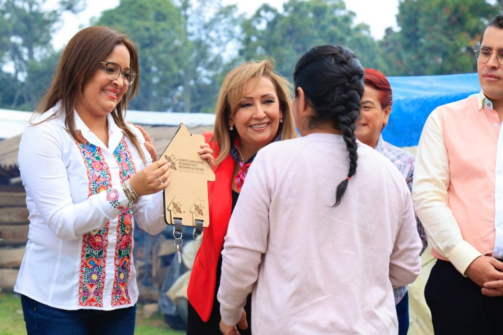 La gobernadora Lorena Cuéllar, acompañada de diputados locales, integrantes del Comité Consultivo y autoridades municipales y de comunidad, entregó de manera simbólica los 10 cuartos dormitorios.