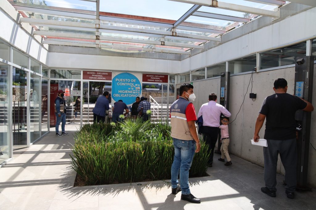 Al ingreso a los juzgados foráneos y en Ciudad Judicial, se mantienen los filtros para colocar gel antibacterial, lavado de manos, sanitización y sana distancia; además, por acuerdo del Consejo de la Judicatura, es obligatorio el uso del cubrebocas en espacios cerrados.