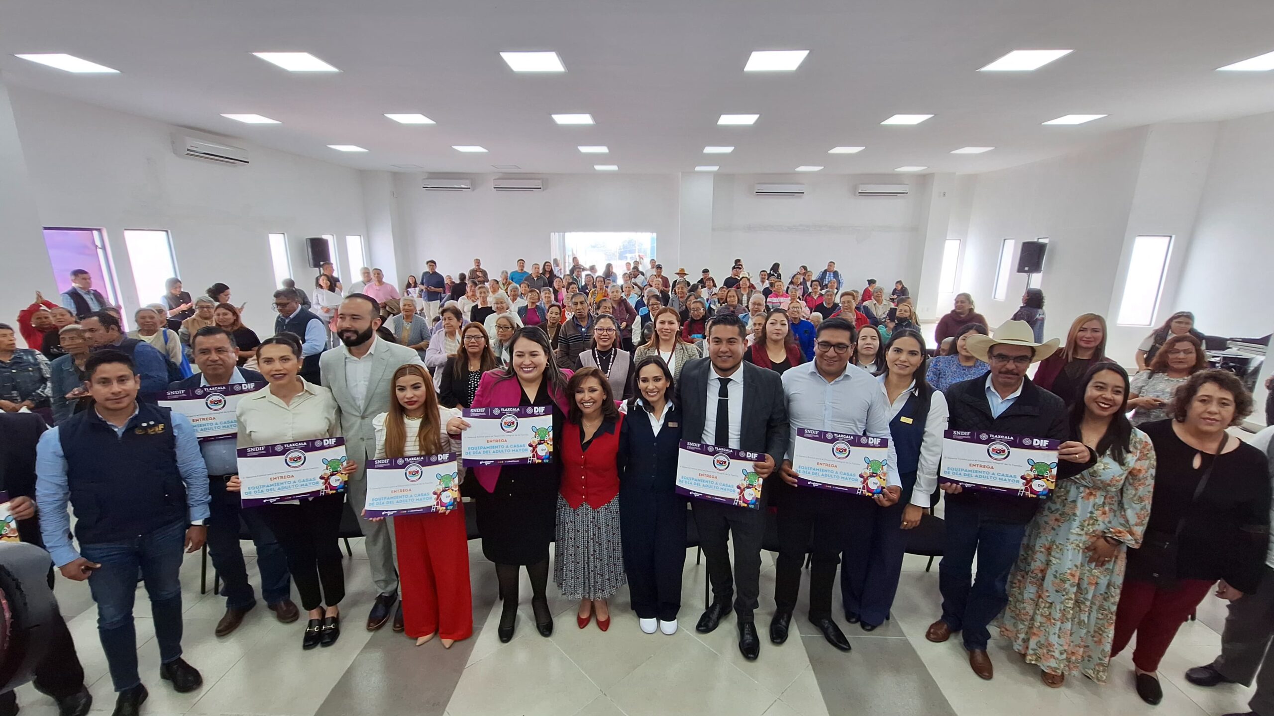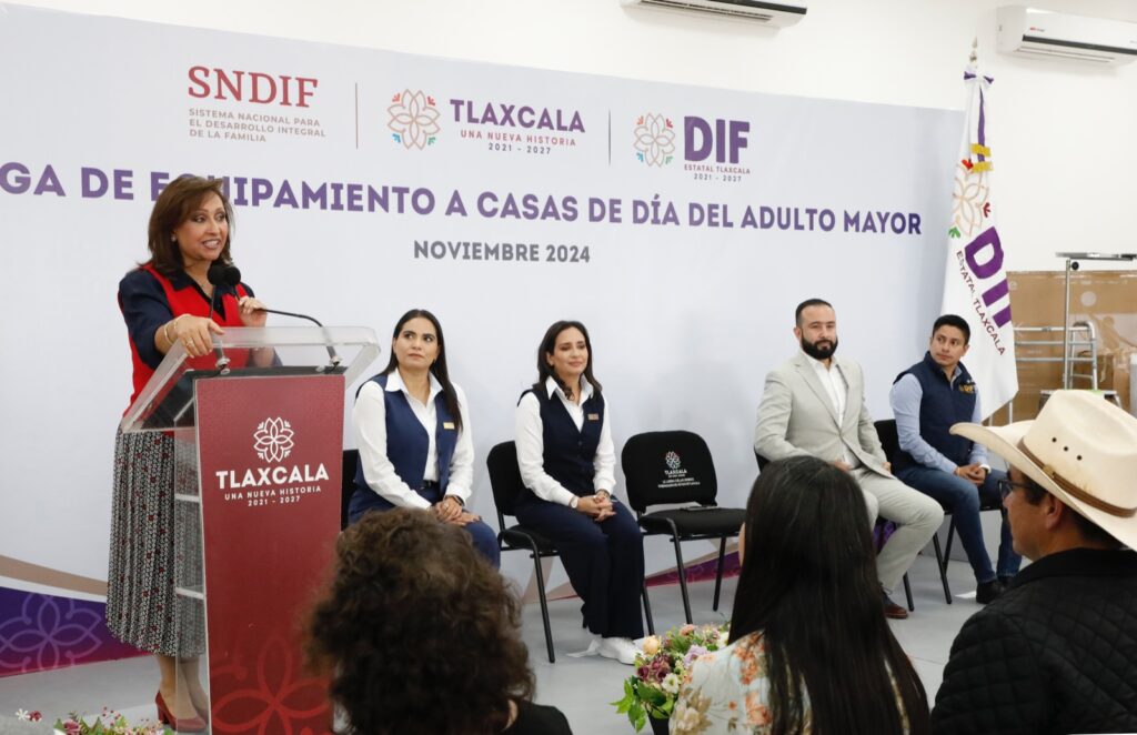 En compañía de la presidenta honorífica del Sistema Estatal para el Desarrollo Integral de la Familia (SEDIF), Mariana Espinosa de los Monteros Cuéllar, la gobernadora Lorena Cuéllar Cisneros encabezó la entrega de equipamiento para las Casas de Día del Adulto Mayor, recién inauguradas en ocho municipios de Tlaxcala, así como para la Casa de Día para Personas Mayores del SEDIF, ubicada en Apetatitlán.