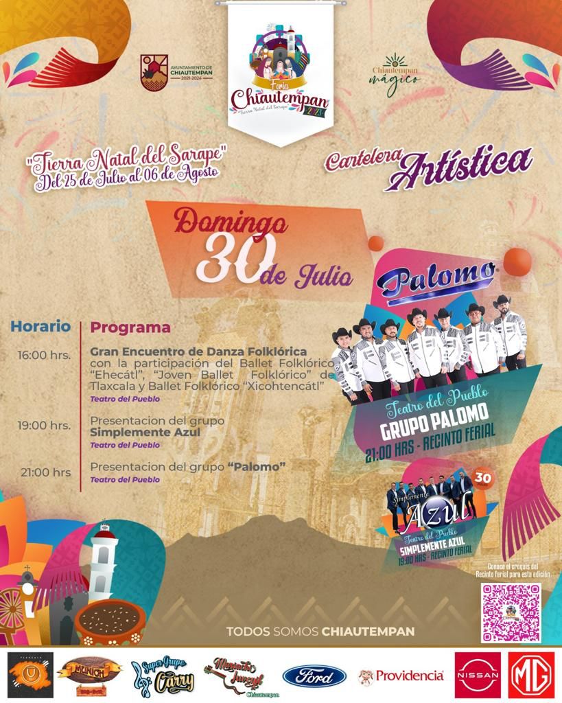 El Ayuntamiento de Chiautempan en coordinación con el Patronato de Feria, invitan a la población a acudir a los diferentes eventos programados para este domingo del tradicional mole como parte de la fiesta anual.