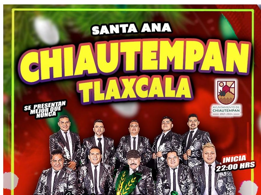 El Ayuntamiento de Chiautempan invita al Gran Baile de Noche Buena con la presentación estelar del grupo “Trigo Verde” y “RMT, La Original Cumbia Romántica”, este viernes en el parque Juárez.