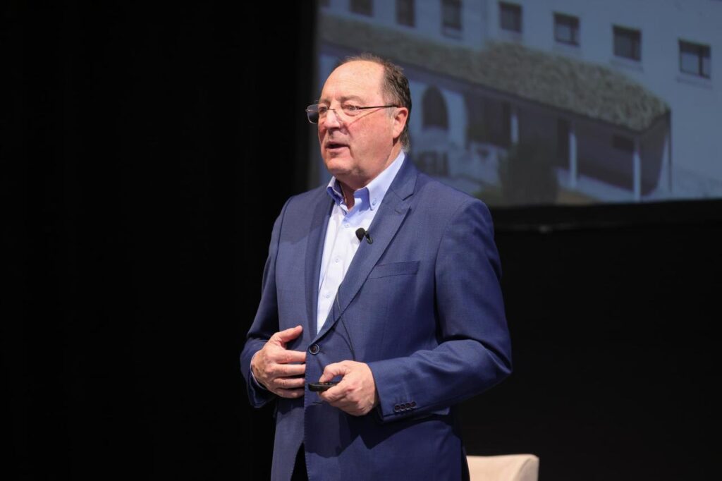 En el teatro Xicoténcatl, el fundador de Bodegas Familiares Matarromera, Carlos Moro González, ofreció la conferencia magistral “Sostenibilidad, medio ambiente y naturaleza”, en donde habló sobre el papel crucial de la sostenibilidad empresarial para reducir su impacto en el medioambiente y la sociedad.