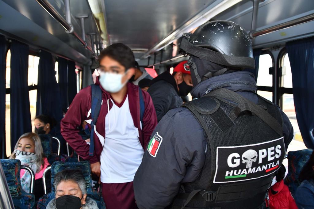 Como parte de los operativos de prevención y vigilancia que realiza la Dirección de Seguridad Pública, Tránsito y Protección Civil de Huamantla, se lleva a cabo en las entradas y salidas del municipio el operativo “Transporte Seguro”, que busca dar acompañamiento a usuarios y transportistas con revisiones a las unidades de transporte.