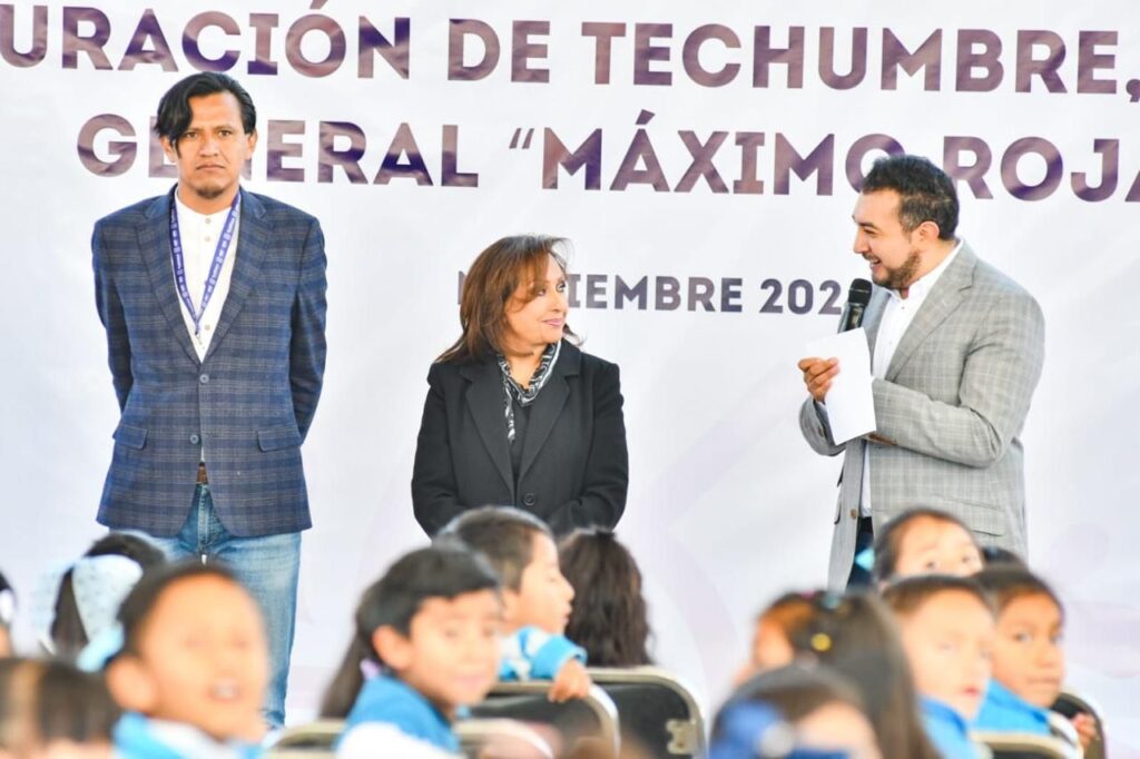 En la primera parte de esta gira, y en medio de un ambiente festivo, tanto el presidente municipal como la gobernadora inauguraron las techumbres del preescolar «Federico Froebel» y de la primaria general “Máximo Rojas”, en la comunidad Ignacio Zaragoza, así como el preescolar «Ollin Yoliztli”, en el Pueblo de la Cruz.