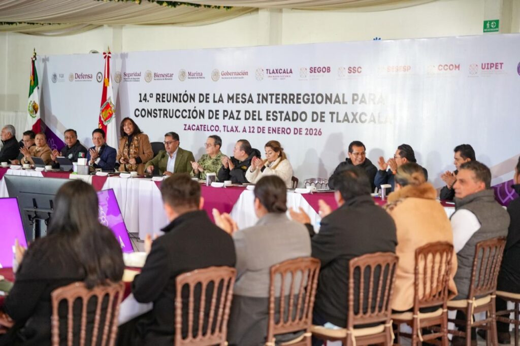 Al encabezar la 14ª Reunión de la Mesa Interregional para la Construcción de la Paz, la gobernadora Lorena Cuéllar Cisneros afirmó que la paz que hoy vive Tlaxcala es resultado del trabajo conjunto, constante y coordinado entre autoridades estatales, municipales y ciudadanía, lo que ha permitido que la entidad registre el menor índice delictivo del país, incluso por debajo de estados tradicionalmente considerados seguros.