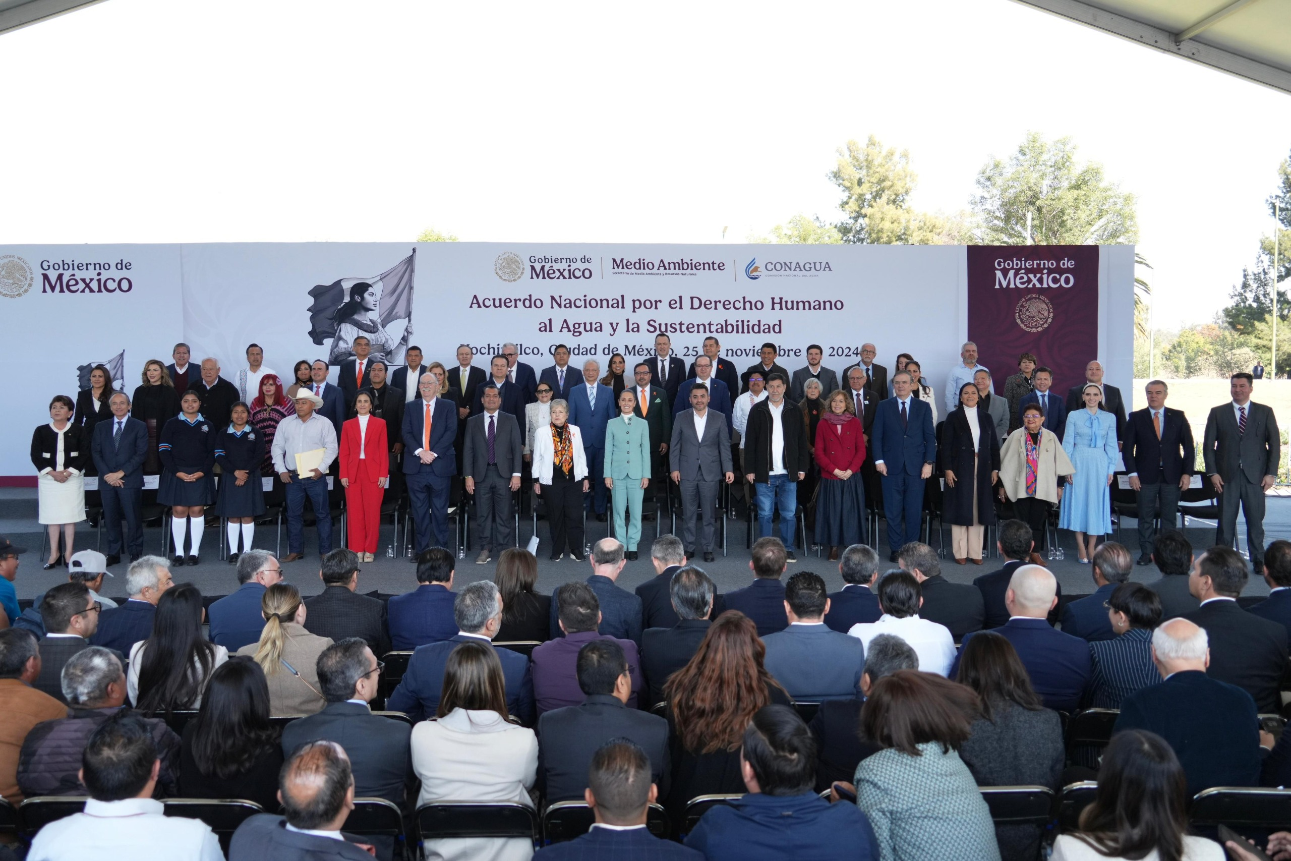 La presidenta de México, Claudia Sheinbaum Pardo, encabezó una reunión histórica con gobernadoras y gobernadores de todos los partidos políticos, empresarias, empresarios, instituciones académicas y representantes de distritos de riego, para firmar el Acuerdo Nacional por el Derecho Humano al Agua y la Sustentabilidad.