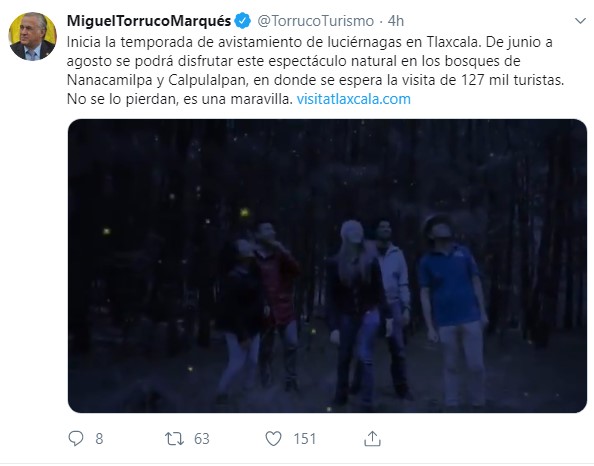 A través de su cuenta de Twitter, el secretario de Turismo Federal, Miguel Torruco Marqués, invitó al turismo nacional a visitar Tlaxcala y disfrutar del inicio...