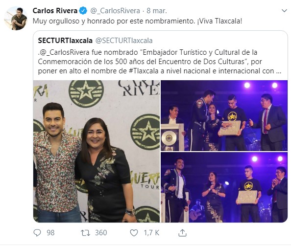 Tlaxcala y Veracruz cuentan con embajadores de primera línea para promover la conmemoración de sus festejos de 500 años. El Gobierno del Estado agradeció al cantante...
