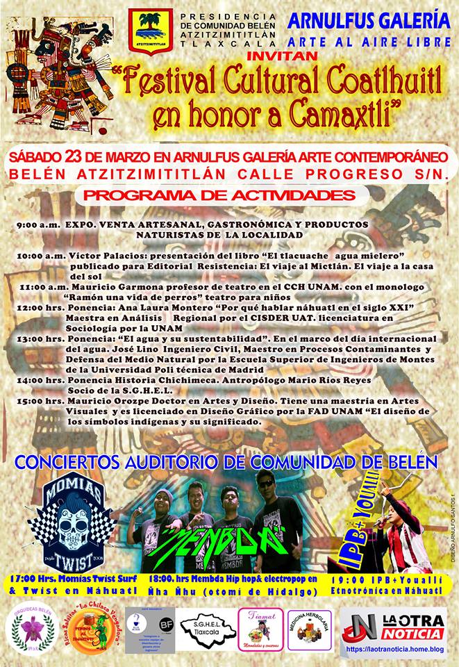 Este 23 de marzo, en Arnulfus Galería Arte Contemporáneo, se llevará acabo el Festival Cultural “Coatlhuitl Camaxtli”, un espacio de expresión cultural que busca ofrecer al...
