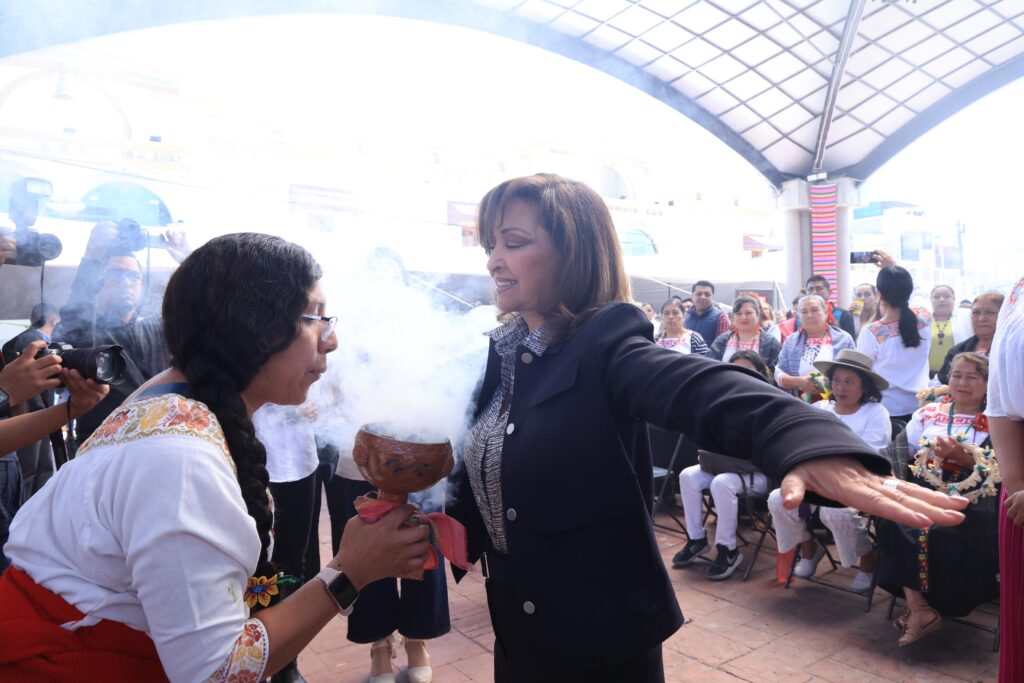 Antes, la subsecretaria para una vida Libre de Violencias, Ingrid Gómez Saracibar, y la directora general de Financiera para el Bienestar, María del Rocío Mejía Flores, ambas del gobierno de México, también participaron el ritual que preserva las raíces tlaxcaltecas.