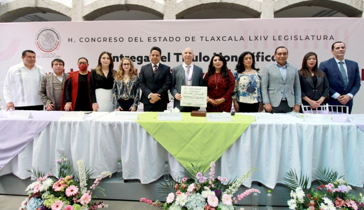 En el Patio Vitral del Congreso del Estado, las Comisiones de Educación, Cultura, Ciencia y Tecnología y la de Medio Ambiente y Recursos Naturales, que presiden las diputadas Laura Alejandra Ramírez Ortiz y Marcela González Castillo, en compañía de los presidentes de la Mesa Directiva y de la Junta de Coordinación y Concertación Política (JCCP), Miguel Ángel Caballero Yonca y Rubén Terán Águila, respectivamente, hicieron la entrega del título honorífico al Dr. Ricardo Lorenzetti como “Heraldo de la Educación y la Justicia Ambiental”, por su destacada trayectoria y contribución a la educación en materia ambiental, así como la materialización de un efectivo derecho ambiental.