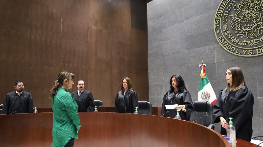 En su oportunidad, la Magistrada Presidenta del TSJ-CJE, Mary Cruz Cortés Ornelas, reconoció el trabajo y aportación profesional de la Consejera saliente Dora María García Espejel, quien presidió la Comisión de Administración; además, fue integrante de las comisiones de Disciplina, Vigilancia y Visitaduría, así como de Carrera Judicial.