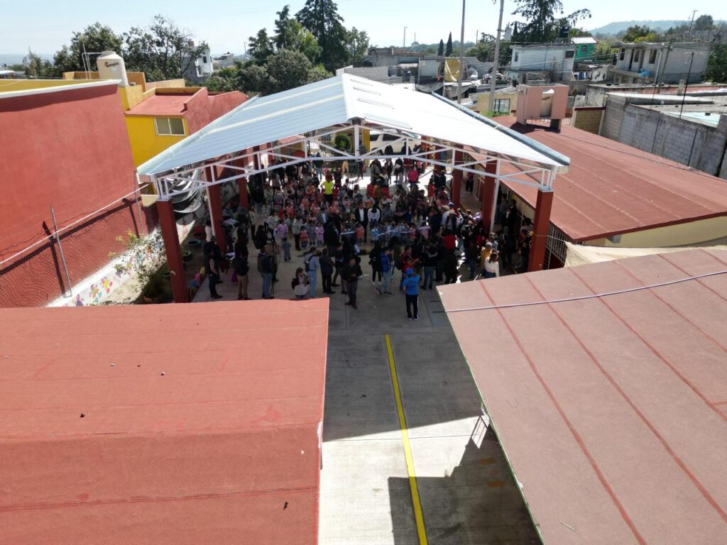 En cuanto a la inversión, precisó que la construcción de las techumbres tuvo un costo superior a los 3 millones 466 mil 567 pesos, e incluyó la instalación de estructura metálica, canalón de lámina galvanizada, láminas pintro R-101 y lámina poliacrílica reforzada.
