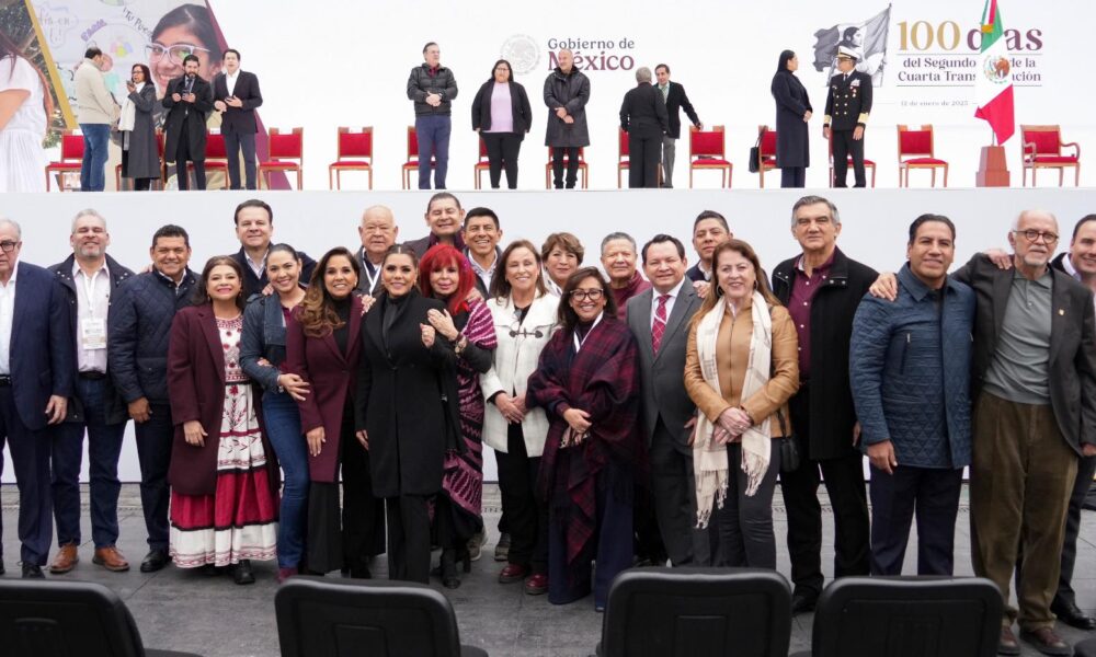 LUIS ROMERO La gobernadora Lorena Cuéllar Cisneros acompañó a la presidenta Claudia Sheinbaum Pardo en su mensaje con motivo de los 100 Días del Segundo Piso...