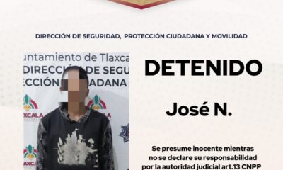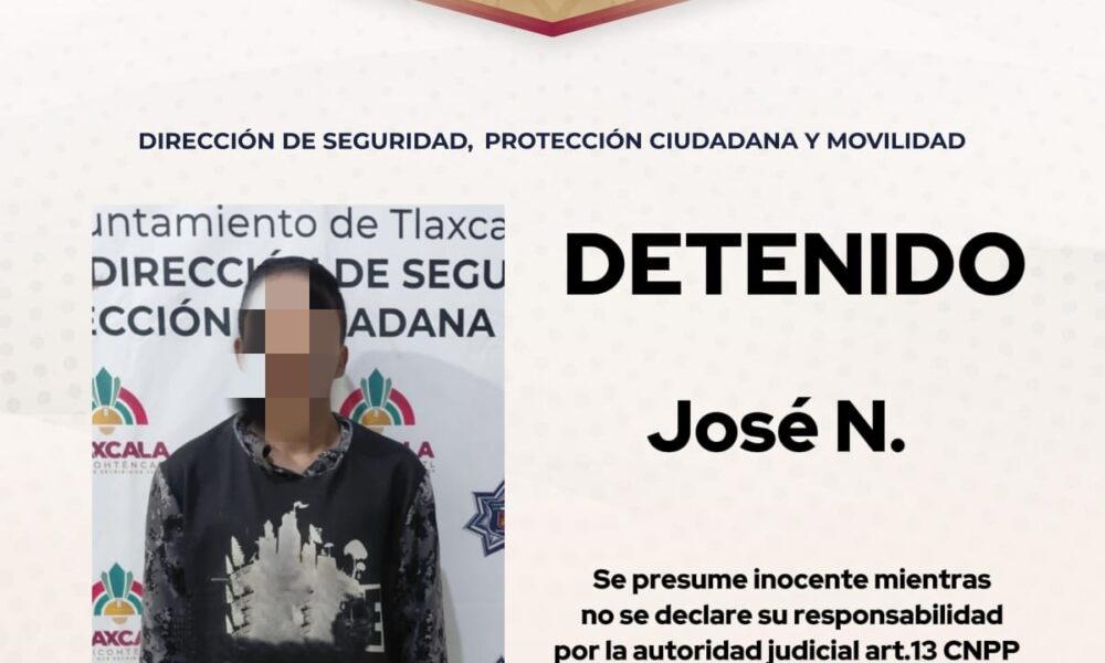 Elementos de la Dirección de Seguridad, Protección Ciudadana y Movilidad del Municipio de Tlaxcala detuvieron a un hombre de 24 años de edad, identificado como José...