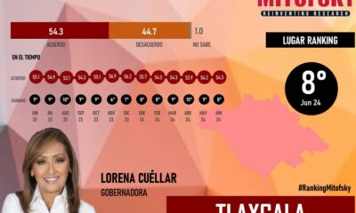 LUIS ROMERO Por tercer mes consecutivo, la mandataria tlaxcalteca Lorena Cuéllar Cisneros remontó una posición dentro del top 10 del ranking de Gobernadoras y Gobernadores de...