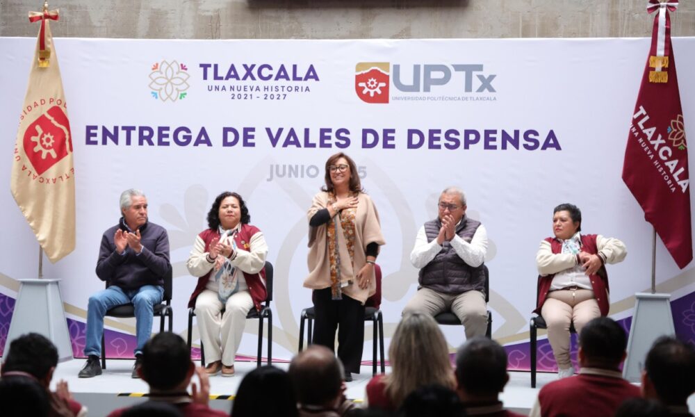 La gobernadora Lorena Cuéllar Cisneros encabezó la entrega de vales de despensa al personal docente, administrativo y de servicios de la Universidad Politécnica de Tlaxcala (UPTx),...