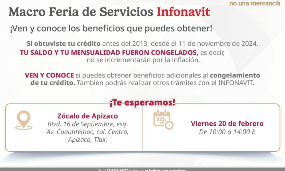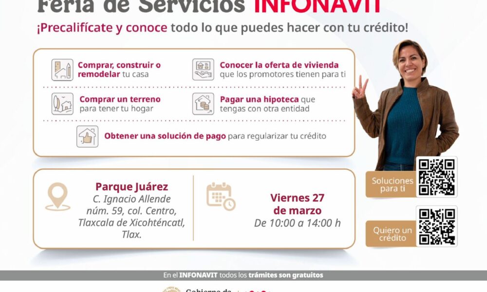 La Delegada Regional del Infonavit Tlaxcala, Alejandra Ramírez Ortiz, informó en sus redes sociales que Apizaco será sede de una nueva Feria de Soluciones de Pago....