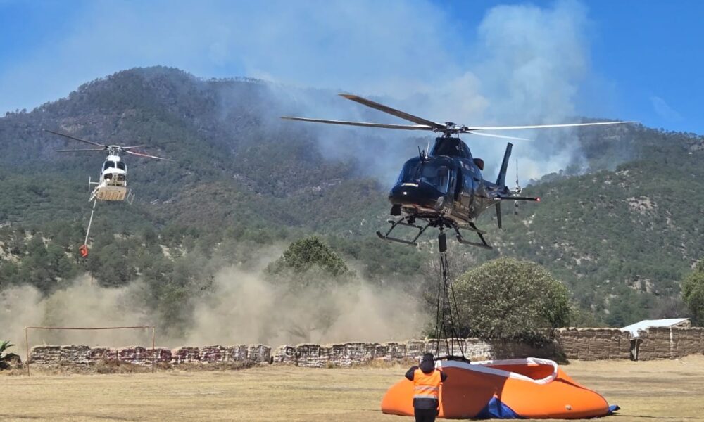 Autoridades de los gobiernos de Puebla y Tlaxcala coordinan acciones para combatir del fuego en el cerro de San Gabriel en el municipio de Libres, la...