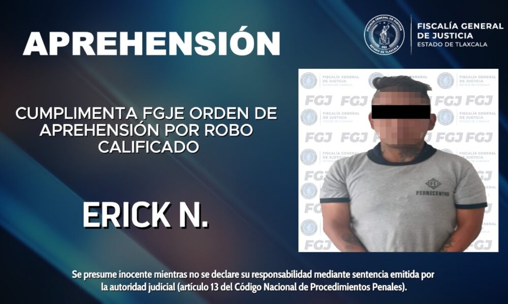 La Fiscalía General de Justicia del Estado (FGJE), a través de la Policía de Investigación, cumplimentó una orden de aprehensión en contra de Erick N., por...