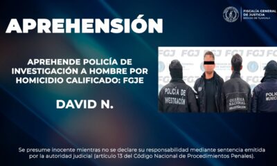Elementos de la Policía de Investigación de la Fiscalía General de Justicia del Estado (FGJE) lograron la aprehensión de David N., por el delito de homicidio...