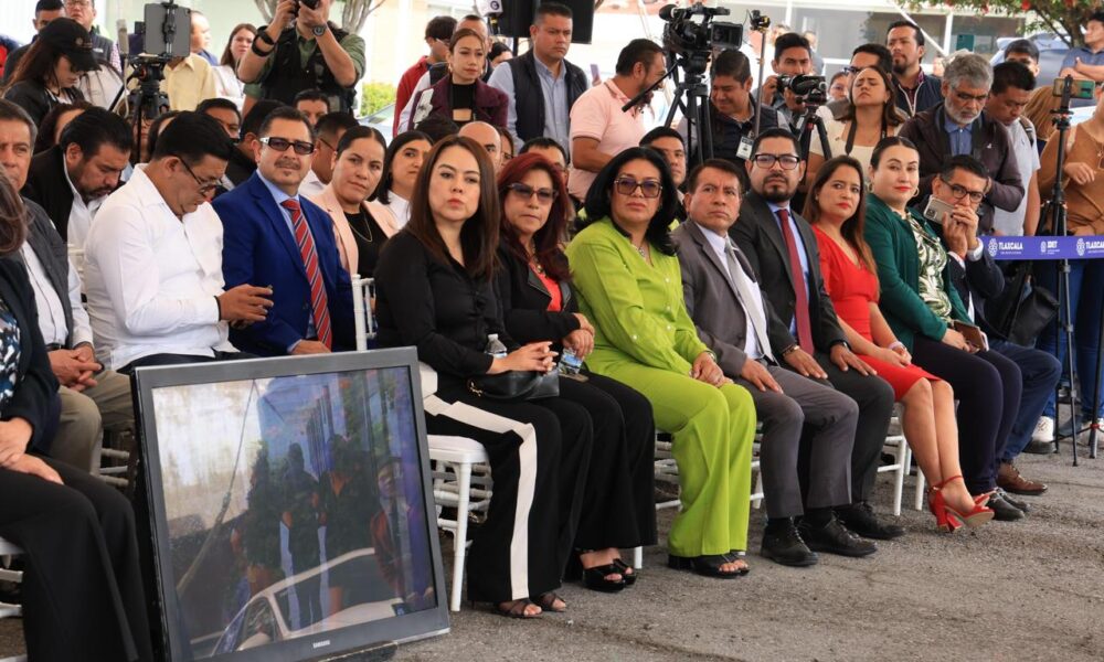 El Magistrado Presidente del Tribunal de Justicia Administrativa del Estado de Tlaxcala (TJAE), Manuel Vázquez Conchas; la Magistrada Interina, Luz María Vázquez Ávila y el Magistrado, Elías Cortés Roa, estuvieron presentes en la entrega de equipamiento que realizó la Gobernadora, Lorena Cuéllar Cisneros, a personal de la Fiscalía General de Justicia del Estado (FGJE) encabezada por Ernestina Carro Roldán, con el objetivo de brindarles las herramientas necesarias para su desempeño laboral.