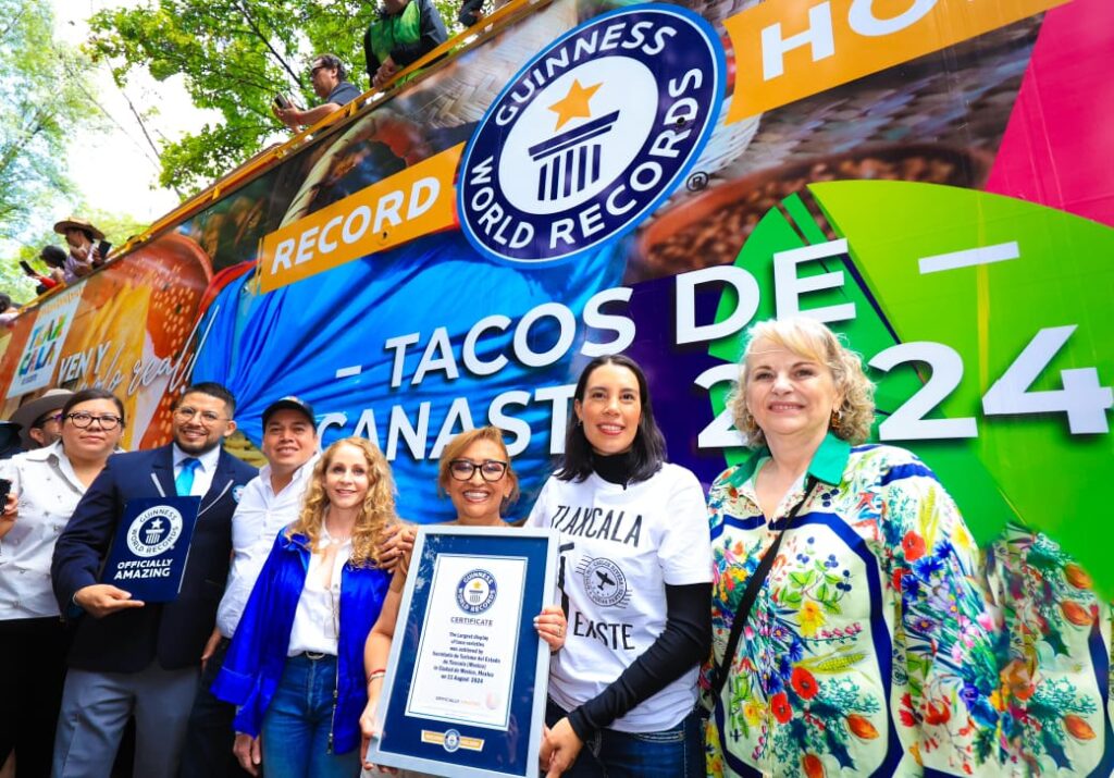 Tlaxcala batió el Récord Guinness de la mayor variedad de tipos de tacos de canasta, en un evento que se llevó a cabo, este domingo, en la Ciudad de México, el cual fue encabezado por la gobernadora Lorena Cuéllar Cisneros y en el que se repartieron más de 30 mil piezas de este platillo.