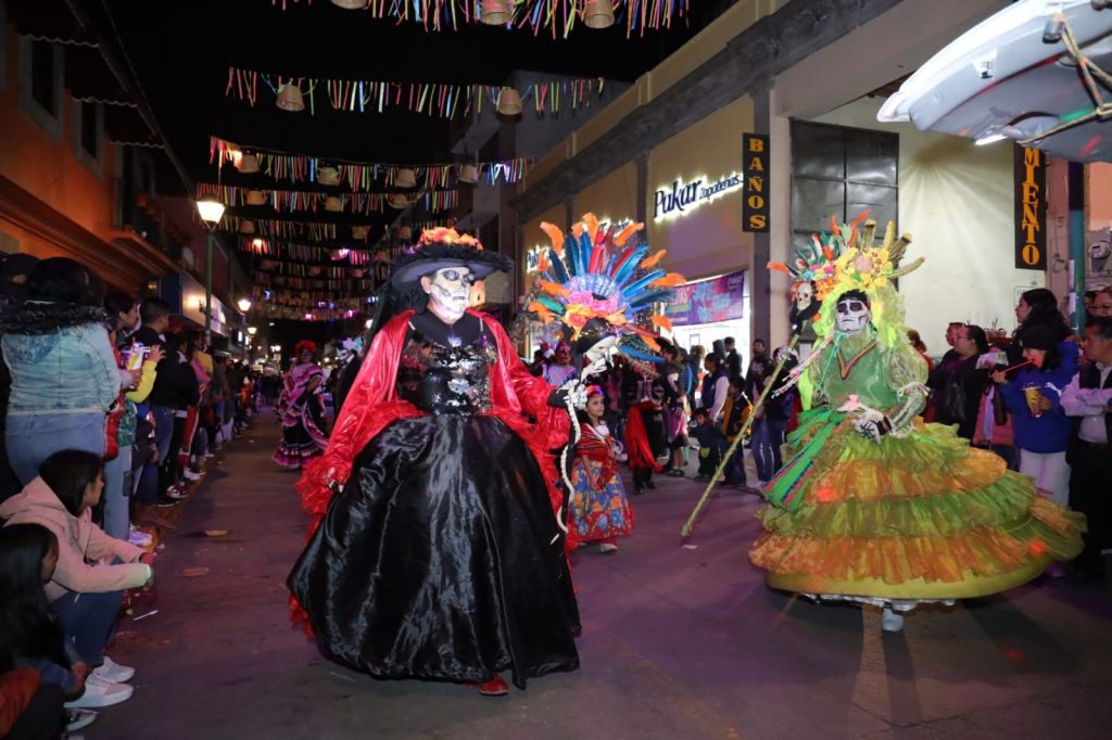 Con la participación de más de 30 contingentes entre instituciones educativas, carros alegóricos, asociaciones y grupos culturales, así como de ciudadanía en general, los asistentes disfrutaron de un ambiente cálido, lleno de emociones, música, catrinas y catrines por las principales calles de la ciudad.